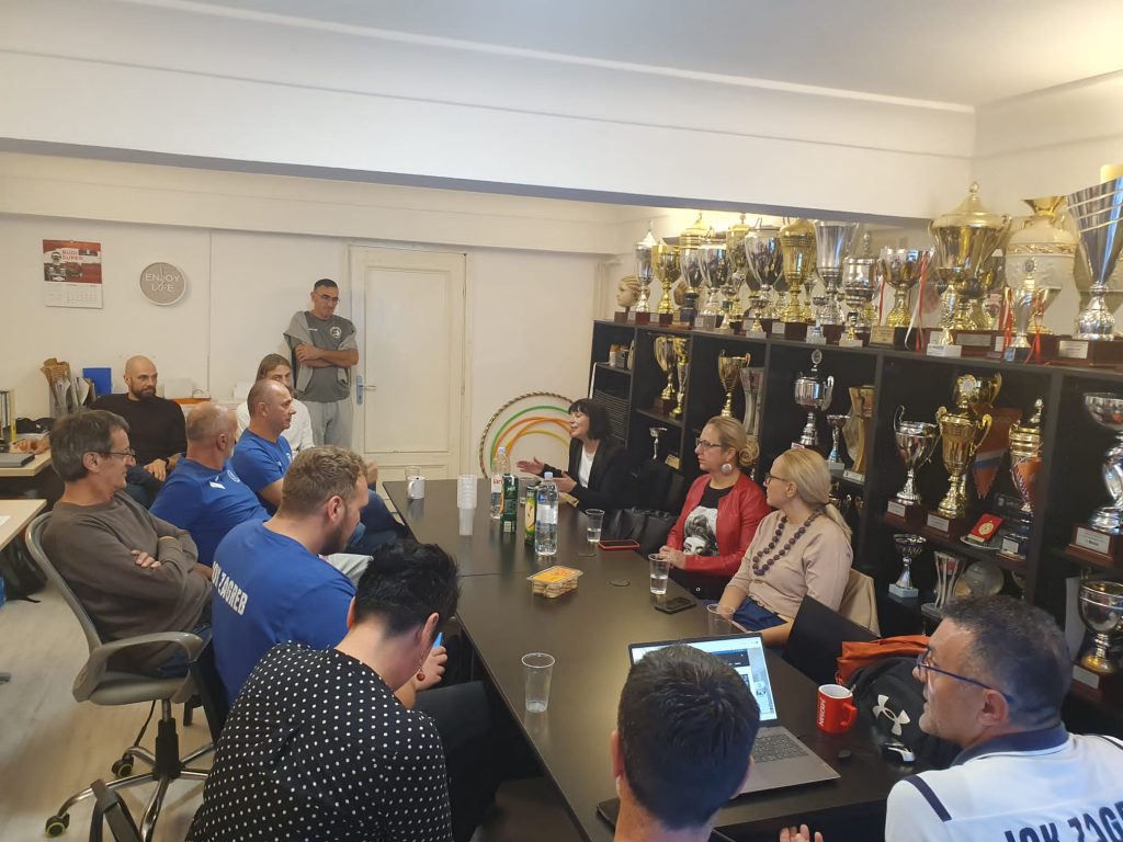 U srijedu, 25.10.2023. godine, naše društvo posjetila je pročelnica Gradskog ureda za socijalnu zaštitu, zdravstvo, branitelje i osobe s invaliditetom mr.sc. Lora Vidović sa suradnicama. U njenoj pratnji bila je zamjenica pročelnice dr.sc. Romana Galić, pomoćnica pročelnice za branitelje Suzana Havelka Noršić, dipl. soc. rad. i voditeljica Odjela za programe udruga Milena Suknaić, dipl. soc. rad. Cilj posjeta je bio upoznavanje sa radom udruga iz Domovinskog rata. O radu i rezultatima DSR „Centar za sport i rekreaciju Zagreb“ gošće je upoznao predsjednik društva Boris Dimitrić, a o radu i rezultatima Invalidskog odbojkaškog kluba „Zagreb“ predsjednik kluba Damir Kasap. Pročelnica mr.sc. Lora Vidović izrazila je zadovoljstvo viđenim te pohvalila rad kluba i društva. Damir Kasap se u ime kluba i društva zahvalio na posjeti i na dosadašnjoj uspješnoj suradnji sa Gradskim uredom za socijalnu zaštitu, zdravstvo, branitelje i osobe s invaliditetom.